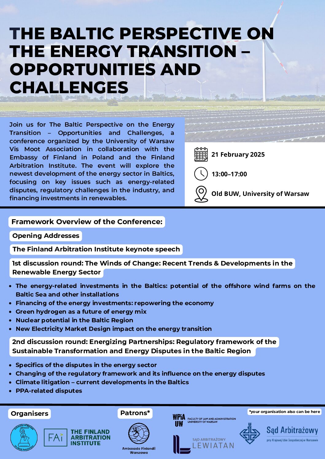 Zapraszamy na konferencję „The Baltic Perspective on the Energy Transition – Opportunities and Challenges”, która odbędzie się 21 lutego 2025 r. na Uniwersytecie Warszawskim (Stary BUW).